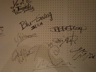 壁にサイン書いて