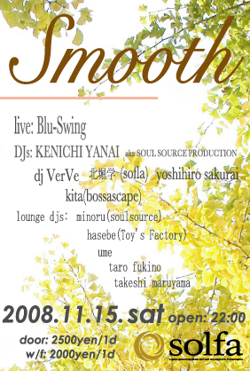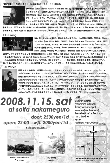11月15日、中目黒solfaでのBlu-Swingライブのフライヤーです(残念ながら僕は出られませんが、、みなさん来てください!)。